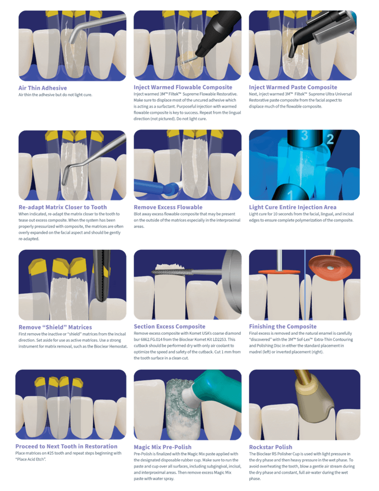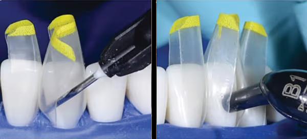 치아 표면을 정리한 뒤 투명 매트릭스를 이용해 레진을 주입해 형태를 만듭니다. 이 과정에서 치아 사이 접촉점과 형태를 자연스럽게 형성하는 것이 중요합니다. 치료는 보통 한번 내원으로 진행 됩니다.